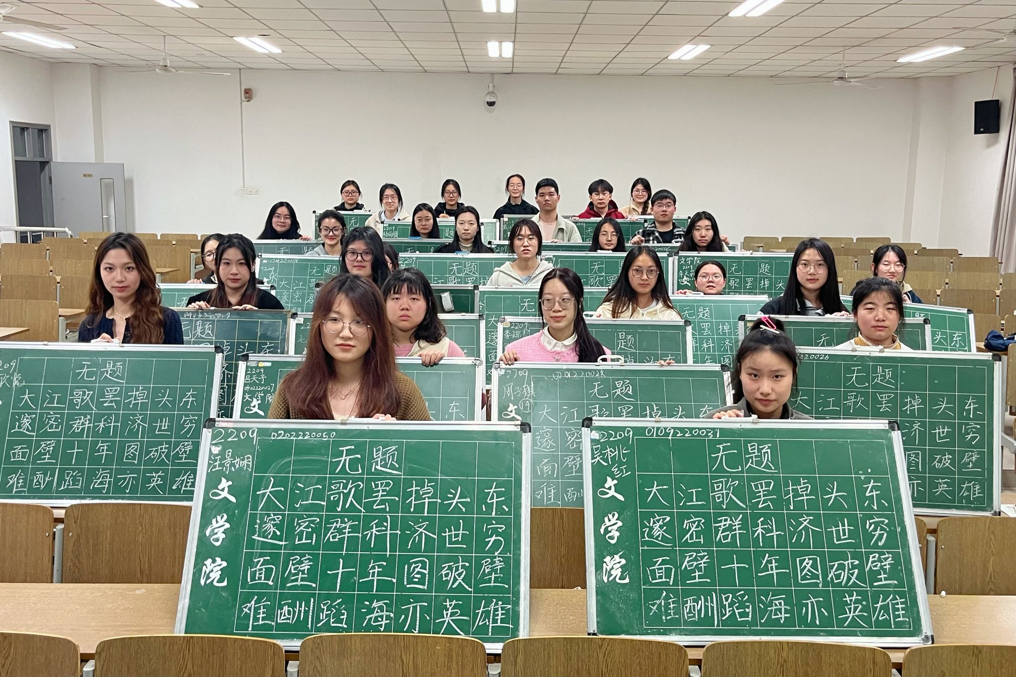 最后是班级粉笔字展示环节,本次临摹的篇目是周恩来总理著名诗文《无题》,“大江歌罢掉头东,邃密群科济世穷……”班级同学在一笔一画中体悟青年时代的周总理力图“破壁而飞”的凌云壮志和献身救国事业的革命精神,活动也逐渐步入尾声。