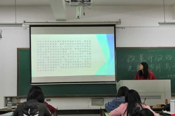 接着,张佳静同学发表了以“行百里者半九十”为题目的演讲。演讲的内容可以浓缩为以下几点:1、改革开放对于中国的重大意义;2、我们要做到改革不停顿,开放不止步;3、未来我们努力要有明确方向并且要走正确的路线。张佳静同学的演讲十分到位,深刻剖析了改革开放,让同学们深刻了解了改革开放。