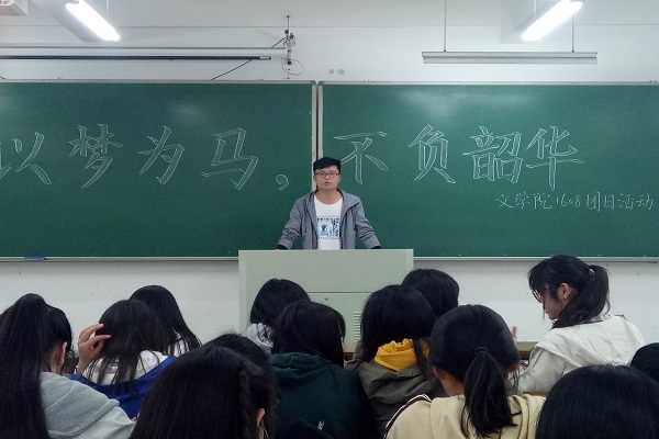 青春以梦为马,梦想不负韶华。活动伊始,由副团支书戴凡宇同学进行简短的引言语介绍,提出在二十一世纪下当代老员工所应当担负的历史使命,并指出当代老员工所应当学习的恩来精神,无论是对自我修养的严格要求亦或是求真务实,脚踏实地,一切从实际出发,戴凡宇都对其精神的精髓做出详细解释,并不时通过恩来总理的感人事迹为同学们进行详细讲解。台下同学们聚精会神的听着,时不时发出啧啧惊叹,感怀那段峥嵘岁月,贴近总理精神,切实地去了解总理精神的外在表现。