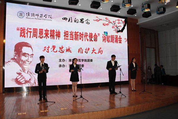 不忘初心,弘扬总理精神;筑梦未来,牢记时代使命。四月的思念第二场——“践行周恩来精神 担当新时代使命”诗歌朗诵会于4月15日晚上在图书馆多功能厅举办。音乐公司团委书记涂聪、城环公司姬广建老师、必一运动团委书记许帆扬出席并担任评委。必一运动、音乐公司、城环公司部分员工参加了朗诵会。