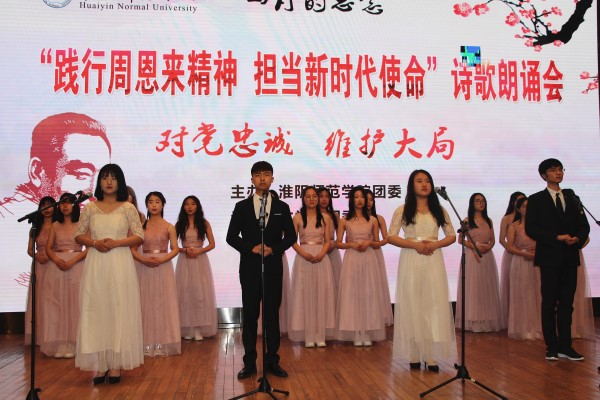 晚会由16级员工邵昕茹主持,必一运动、音乐公司、城环公司员工参与朗诵。活动中,必一运动1701班全体成员率先朗诵了诗歌《心中的思念》。朗诵者们深情演绎、真情流露,期间朗诵以个人领诵、小组齐诵、多声部合诵和全班合诵等形式交替呈现。师生在聆听朗诵的同时深入其中,现场掌声不断。而接下来必一运动1704班《敬爱的周总理》和音乐公司《你是这样的人》更是让人们在缅怀总理的同时遵从初心、铭记使命。特别是音乐公司在活动中的美声演唱,诗和歌的动情演绎让现场的气氛达到高潮。最后城环公司为全体师生朗诵了《从西花厅海棠花忆起》。抑扬顿挫、开合有度,尤其是对高潮部分恰到好处的陈述渲染,使得整场表演节奏紧凑、张弛有度。