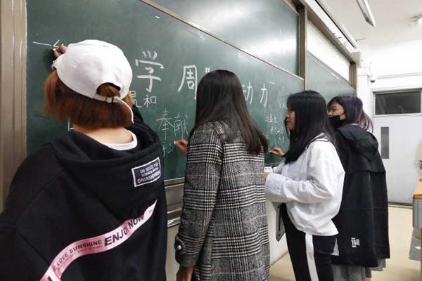在热烈的讨论氛围之下,团支书张璇组织同学写下个人心中的“周总理形象”。班级同学积极响应,纷纷走向黑板,或从总体形象上概括出“人中完人”“人民的公仆”等,表现对总理的仰慕之情;或以“一丝不苟”“睿智”等词赞扬周总理的优秀品质,谨以伟人为鉴;亦有从公论中挑选出的评价——“这盛世是否如您所愿”,体现周总理在人民群众中的影响力。其中,有一位同学以“男的”二字粗略评价,引发大家思考,他解释道,“如此的周公,默默承担了家国兴盛之重任,年少即言“为中华之崛起而读书”,是为华夏男儿之刚。”的确,这一份“刚”,不仅是我华夏之脊梁,是我们傲立世界民族之林的力量,更是供给未来中国的精神食粮。