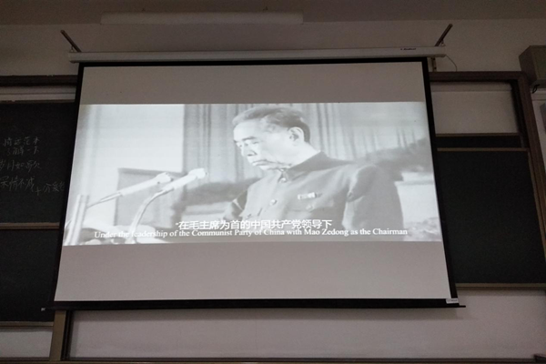 活动伊始,张璇组织全班同学观看《今日中国,如你所愿》的短片。短片一方面对伟人周恩来的一生进行了回顾,引发同学们对人民公仆周总理的深深思念;另一方面将昔日中国之“不能”与今日中国之“有为”进行对比,引领同学感受中华复兴之路的步步艰辛。在进行观感交流时,同学们不约而同地表示为周总理的人格魅力所折服。同时,大部分的同学说道,对历史上的“不能”的是“国耻不敢忘”,并感恩先辈知难而上,为我们造就了今日中国之“可为”,乃至于今日中国之“大有所为”。