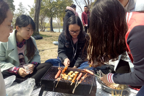活动第一站,同学们来到了周恩来故居,怀着虔诚的心踏入故居,透过一间间房间,一处处景点,同学们更加了解了周总理的生平。斯人已逝,今人犹思,同学们在拜访周恩来故居的同时同也是在向周总理致敬。接下来,在季驰海同学的组织下,同学们来到了萧湖公园,“杨柳青青著地垂,杨花漫漫搅天飞”,三月正是踏青的好时节。通过张炎同学的细心讲解,同学们了解了关于萧湖公园的名人事迹,一路春光美景使得同学们激情高涨,竞相留影。最后,同学们来到了阳光湖公园,所有同学席地而坐,吃着自己亲手做的烧烤,热切讨论着上午的所见所闻所感,尽管手艺不好,但当同学们吃着自己亲手做出来的东西时,心里充满了成就感,随后又进行了一系列游戏,比如放风筝、撕名牌等。同学们你追我赶,欢声笑语,其乐融融。游戏结束离开之前同学们自觉将垃圾收拾带走,成功做一个文明旅游者。