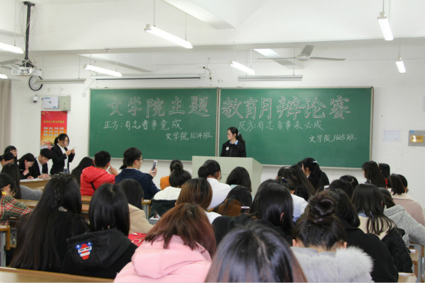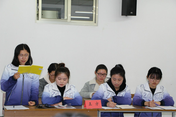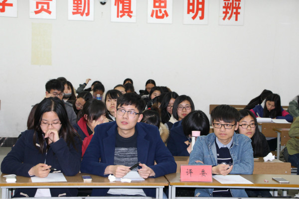 本次主题辩论赛初赛共有六个班级参与,三场辩论赛同时举行。辩题分别为“有志者事竟成/事未必成”、“人生路上,理想信念应与时俱进/坚定不移”、“大学选择专业应首要考虑坚持理想/就业前景”。在主持人宣读了辩论赛“文明礼貌、仪表端庄、态度大方”的要求后,辩论赛正式开始。辩论过程中,双方辩手立论明确、切题深入、准备充分,在开篇立论环节就对辩题进行了深入的剖析和解读。在之后的自由辩论和总结陈词环节,辩手们你来我往,联系事实,引经据典,在坚持自己观点的前提下,抓住对方的漏洞,乘胜追击,或绝地反击,现场的比赛氛围紧张而又激烈。辩手们清晰的思路,缜密的思考以及精彩的辩词博得在场同学的阵阵掌声。