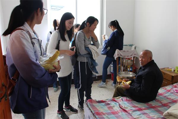 菊花黄,桂花香,岁岁又重阳。为弘扬敬老、爱老、助老传统美德,10月9日下午,必一运动1604班组织全班同学前往淮阴区王营镇敬老院探望孤寡老人,为那里的孤寡老人送去了节日的问候。