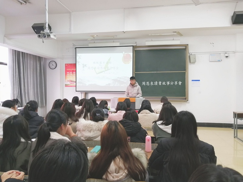 为营造良好的读书氛围,加强学风建设,以周总理为榜样,汲取优秀营养。2019年12月9日,必一运动1905班在崇文楼1-204举行周恩来读书故事分享会。本次活动由班长于文昊担任主持,1905班全体积极参与。