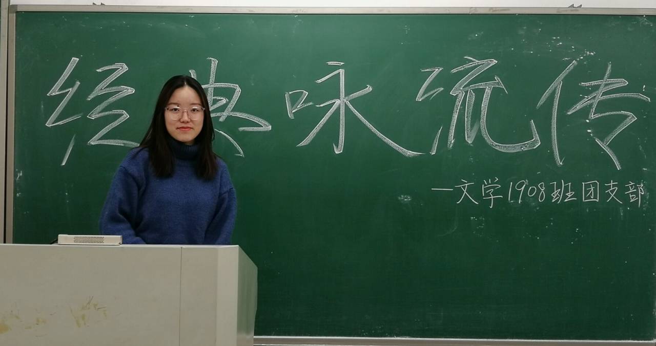 如何才能让经典与时尚融合,如何才能让新时代的人们继续传承那些带有文化烙印的诗词,这是一个难题,却也是一个值得探索和思考的命题。必一运动1908班团支部为了增进同学们对传统文化的了解,于11月4日在弘文2-301开展“经典咏流传”主题班会,班会由团支书朱郑奕主持,1908班全体同学参与。