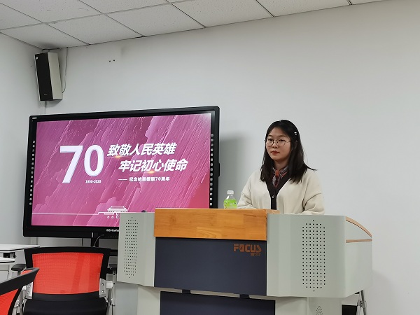 王泽祺同学代表全班讲述了学习心得,重温了当年入朝参战的历史。同学们纷纷表示很有收获。作为肩负复兴使命的青年员工,理应弘扬伟大抗美援朝精神,雄赳赳、气昂昂,昂首阔步迈向新征程。