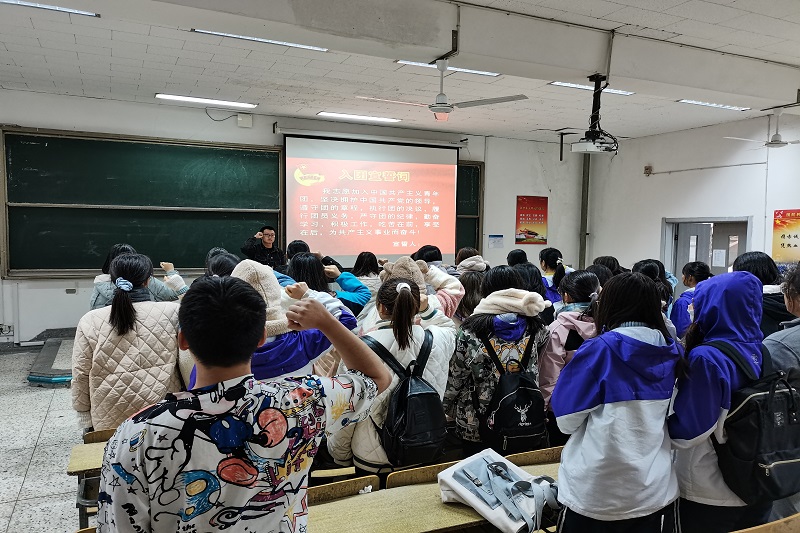 活动开始,全体同学肃立,奏唱团歌。在奏唱团歌后,由团支书领读入团宣言,目的是使同学们深刻认识到身为共青团员的责任与使命,永葆团组织的纯洁性与先进性。