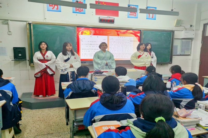 采菊诗社的吴宸月、张琪等五名同学为大家带来歌曲吟唱《无题》和《送蓬仙兄》,诗意与乐音相和,年轻的心与伟人的心相拥,品味穿越历史风尘而来的总理情怀。