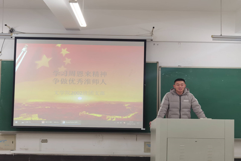 11月30日,2002团支部举办主题为“学习恩来精神,争做优秀淮师人”的主题活动。活动由团支书主持,2002班全体同学参与。