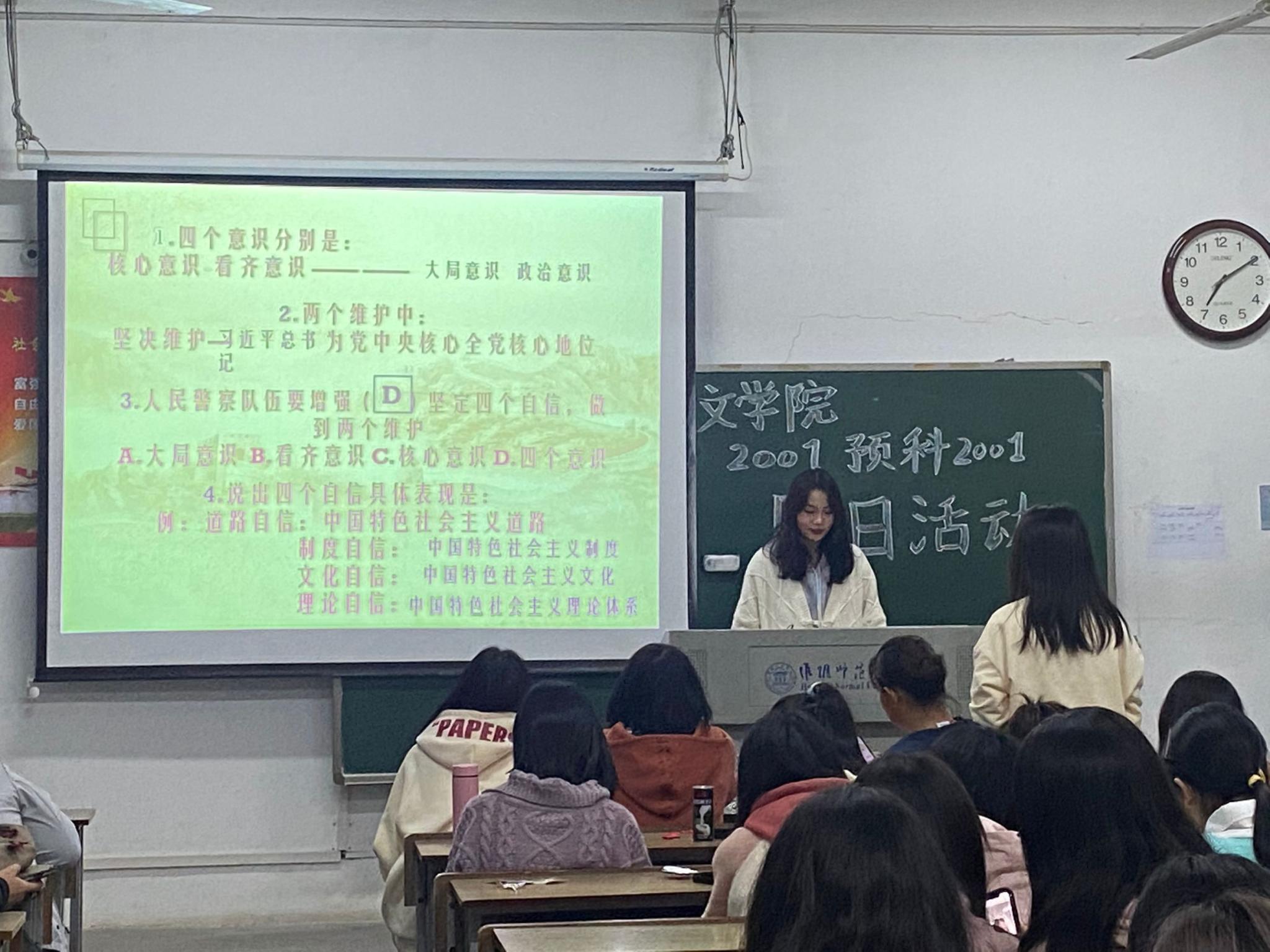 活动开始后,主持人陈心怡同学介绍了“四个意识”“四个自信”以及“两个维护”的相关内容。