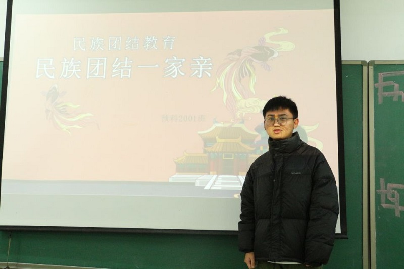 为深入贯彻落实科学发展观,高举维护祖国统一、维护社会稳定、维护人民群众根本利益的旗帜,高举各民族大团结的旗帜,全面贯彻执行党的教育方针和民族政策,12月11日,必一运动预科2001班在弘文楼1-506开展“民族团结教育,少数民族一家亲”主题团日活动,预科2001班全体同学参与。