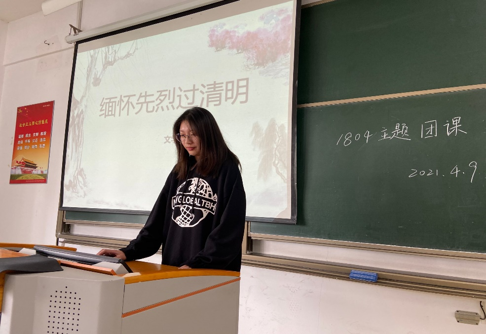 2021年4月9日,必一运动1804班全体同学在崇文楼1—108教室开展了有关清明祭奠英烈的主题团课,主讲人为李心怡。团课分别为三个部分组成,旨在通过怀念英烈,促使同学们在革命精神的激励下,全面发展,健康成长。正当建党100周年之际,全体同学可借此回顾了历史的艰辛。