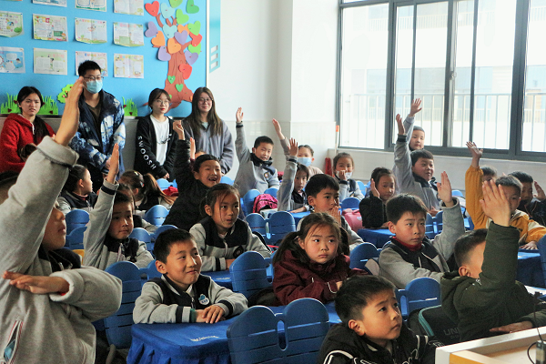 1901班团支书徐然同学向孩子们介绍1901团支部成员。