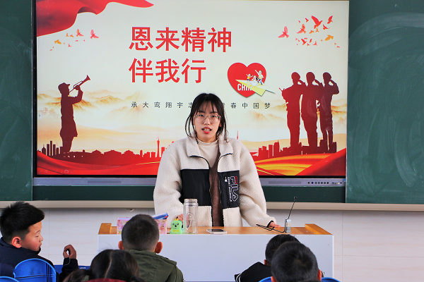 4月14日下午,为了引导同学们了解周恩来生平事迹,弘扬周恩来精神。必一运动1901班部分同学赴必一运动第一附属小学淮师一附小一(5)班进行“恩来精神伴我行”主题教育活动,随行的还有燃灯戏剧社与采菊诗社的部分成员。