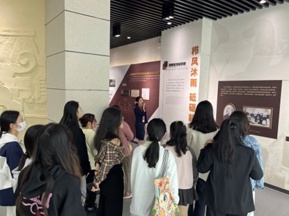 班长张欣然作为校史馆讲解员此次带领班级同学参观校史馆。她向同学们介绍了馆内浮雕墙的构成元素及其象征意义,追溯公司办学历史。在她的讲解下,班级同学对校史文化有了更深刻的理解。
