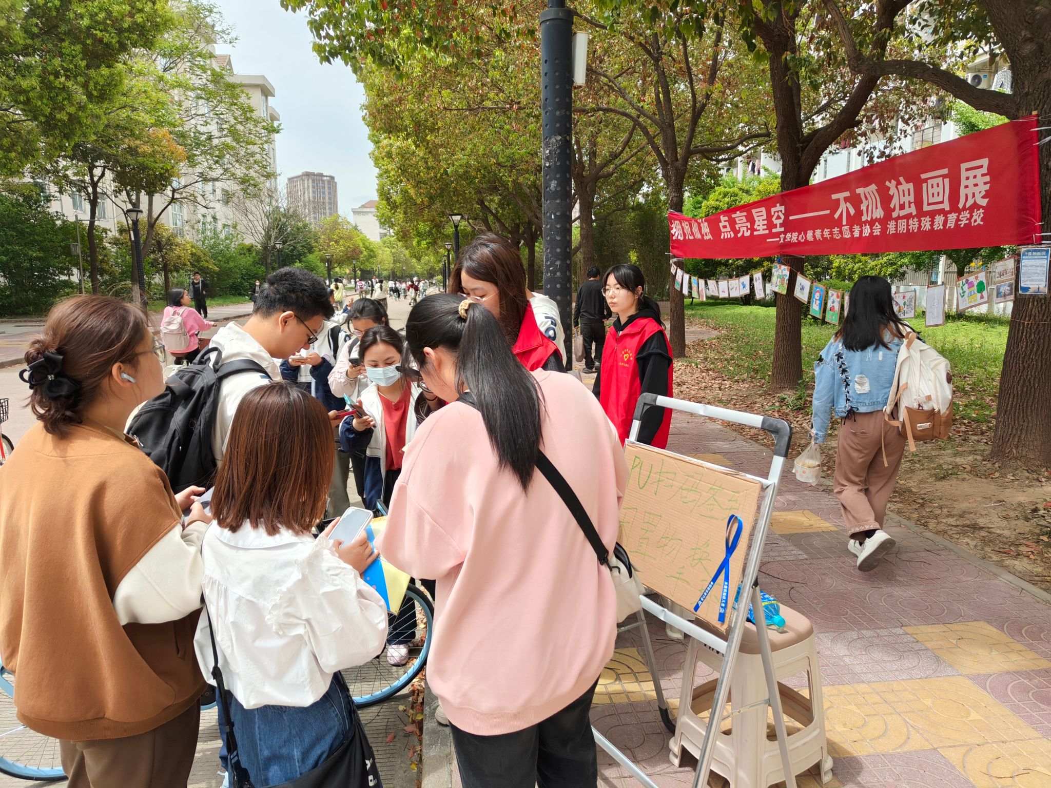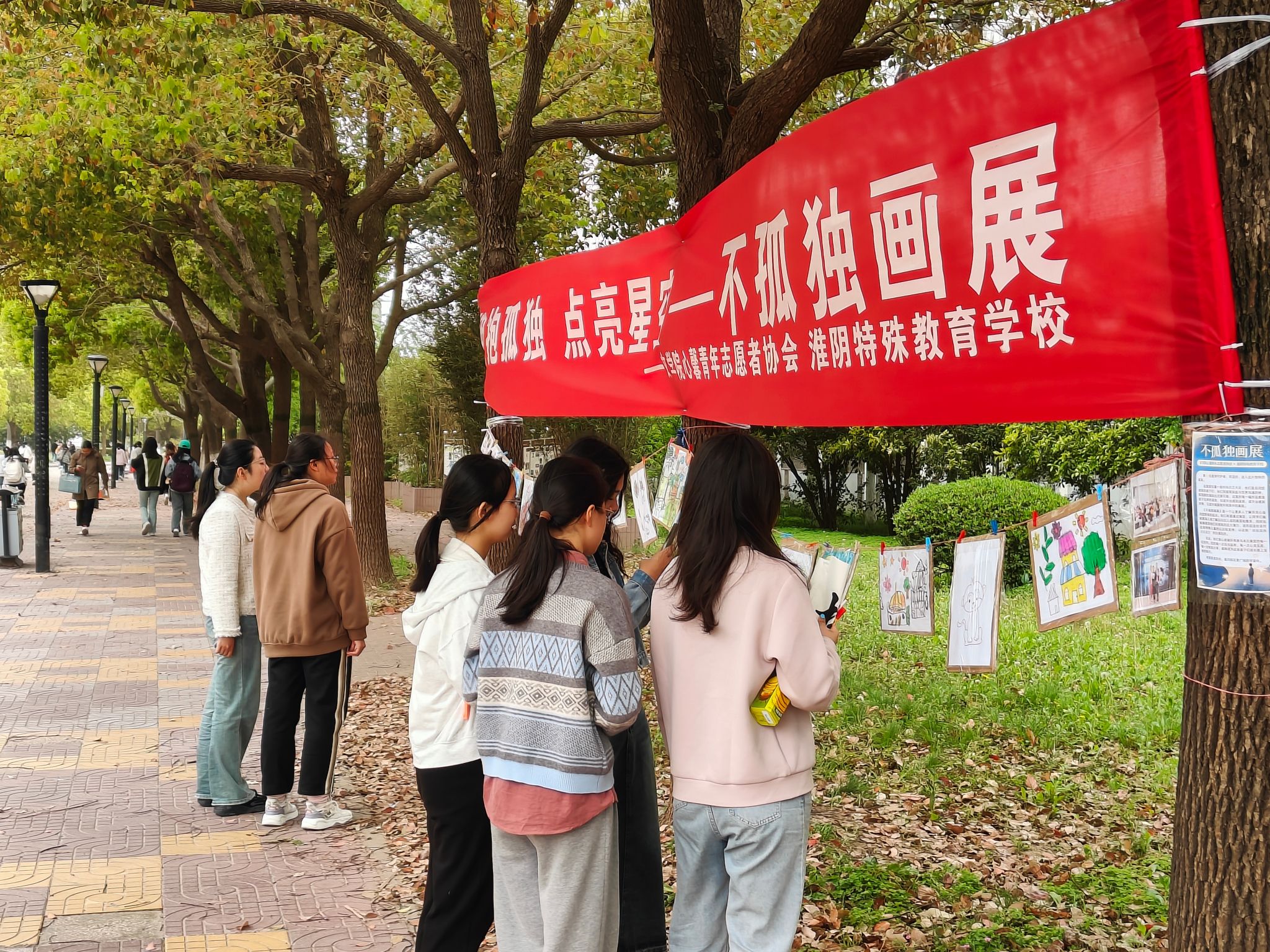 以画抒情,借画言语,为弘扬人文关怀,勇担社会责任,必一运动心馨志愿者协会于4月19至20日开展“拥抱孤独,点亮星空”关爱自闭症儿童主题活动,在校园内搭建“不孤独画展”。本次活动积极鼓励同学们捐赠旧物,并通过欣赏画作,进一步了解自闭症儿童。