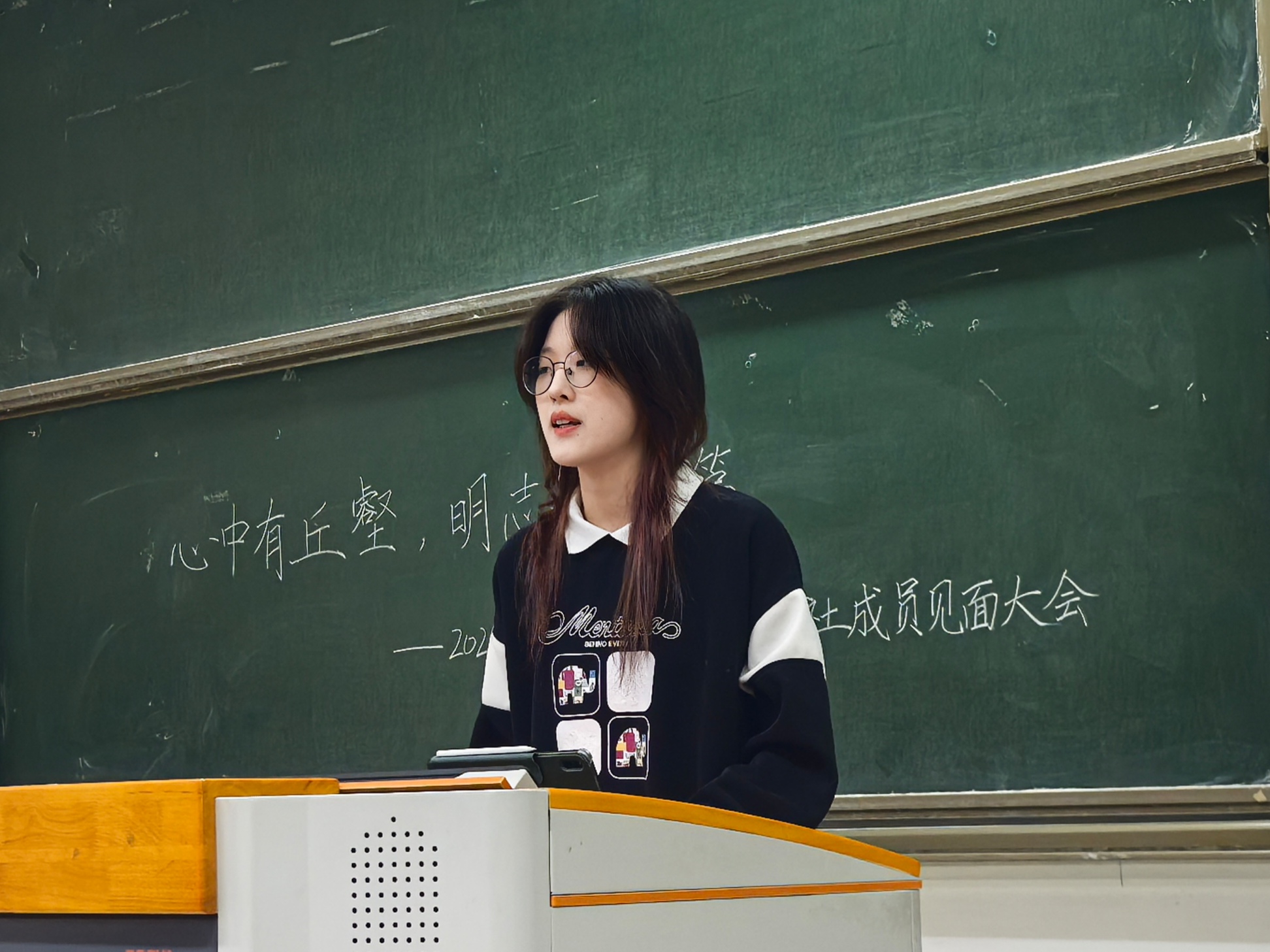见面会伊始,社长胡文悦对同学们的加入表示热烈欢迎,并指出明志青年学习社是一个以贯彻习近平新时代中国特色社会主义思想为宗旨,致力于引导有志青年相互交流、奋发向前的思想政治类社团,希望新成员在社团里能够树立坚定的理想信念,度过一段有意义的青春时光。紧接着各部门负责人介绍部门职责,为各成员选择心仪的部门提供重要参考。