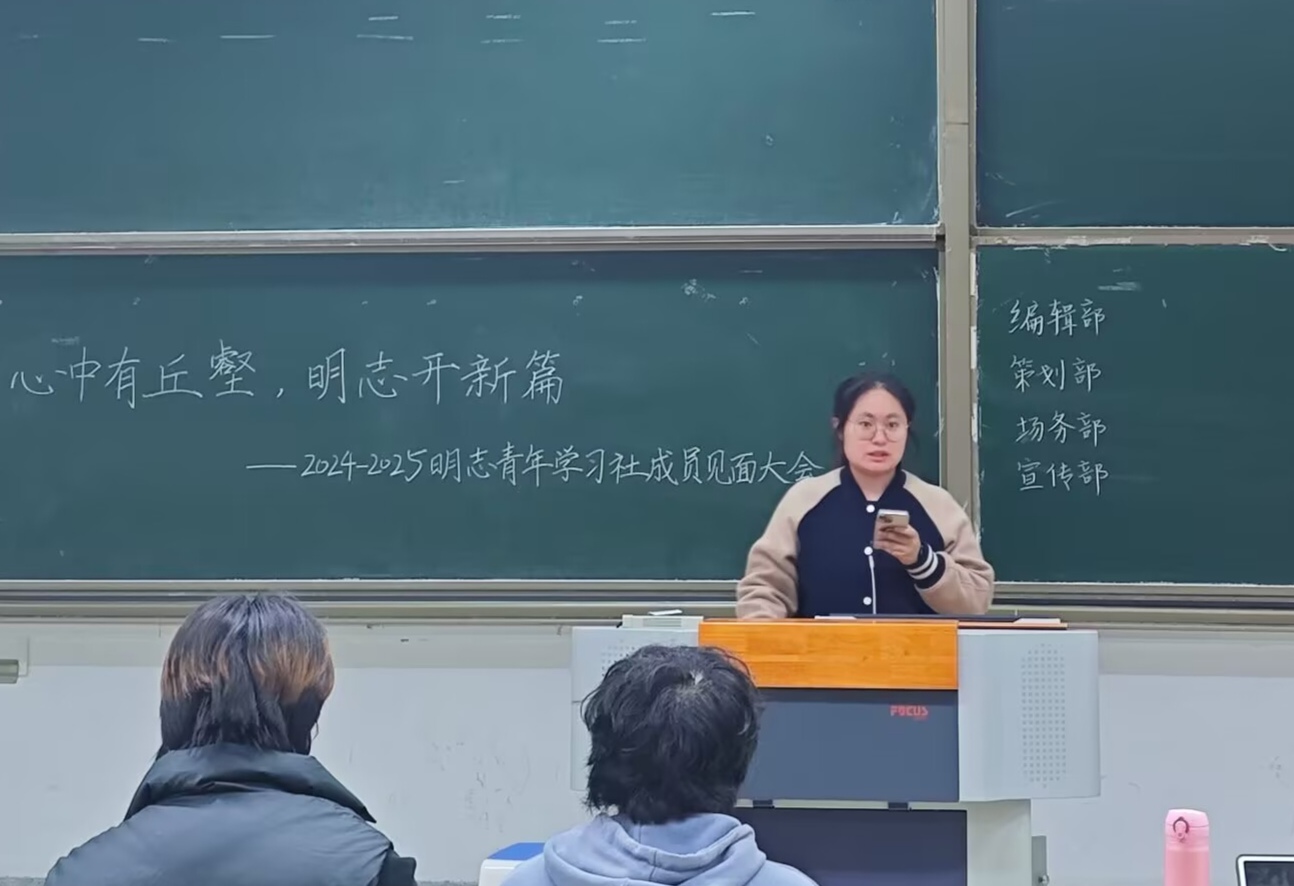 为增进新成员之间的交流,引导有志青年相互学习、共同进步,并进一步贯彻“明志”、“学习”理念,明志青年学习社于11月1日晚在崇文阶1-103成功召开2024年成员见面大会。明志青年学习社全体干部及部分成员参会,社长胡文悦主持本次见面会。