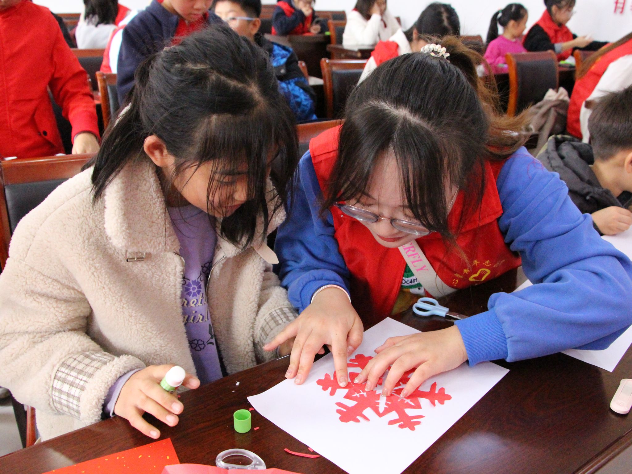 11月10日下午,心馨青年志愿者们携先前收集的优秀剪纸作品来到西坝社区,为社区青少年们带来一场别开生面的非遗知识趣味课堂。主持人贡心颖用“你问我答”的方式拉开了活动的序幕。主持人在问答环节中向青少年们科普中国非物质文化遗产的相关知识,青少年们积极举手发表自己的观点和看法,整个课堂洋溢着轻松和愉悦的氛围。在了解了非遗剪纸的创作技巧后,青少年们在志愿者的指导下迫不及待地拿起红色宣纸和工具进行创作。待创作完毕,不少青少年自告奋勇,主动上台与大家分享剪纸创作的灵感来源和构思。伴随着阵阵热烈的掌声,志愿者向青少年分发前期老员工们创作的优秀剪纸作品,鼓励他们不断汲取非遗之精华,握好新时代文化传承的接力棒。