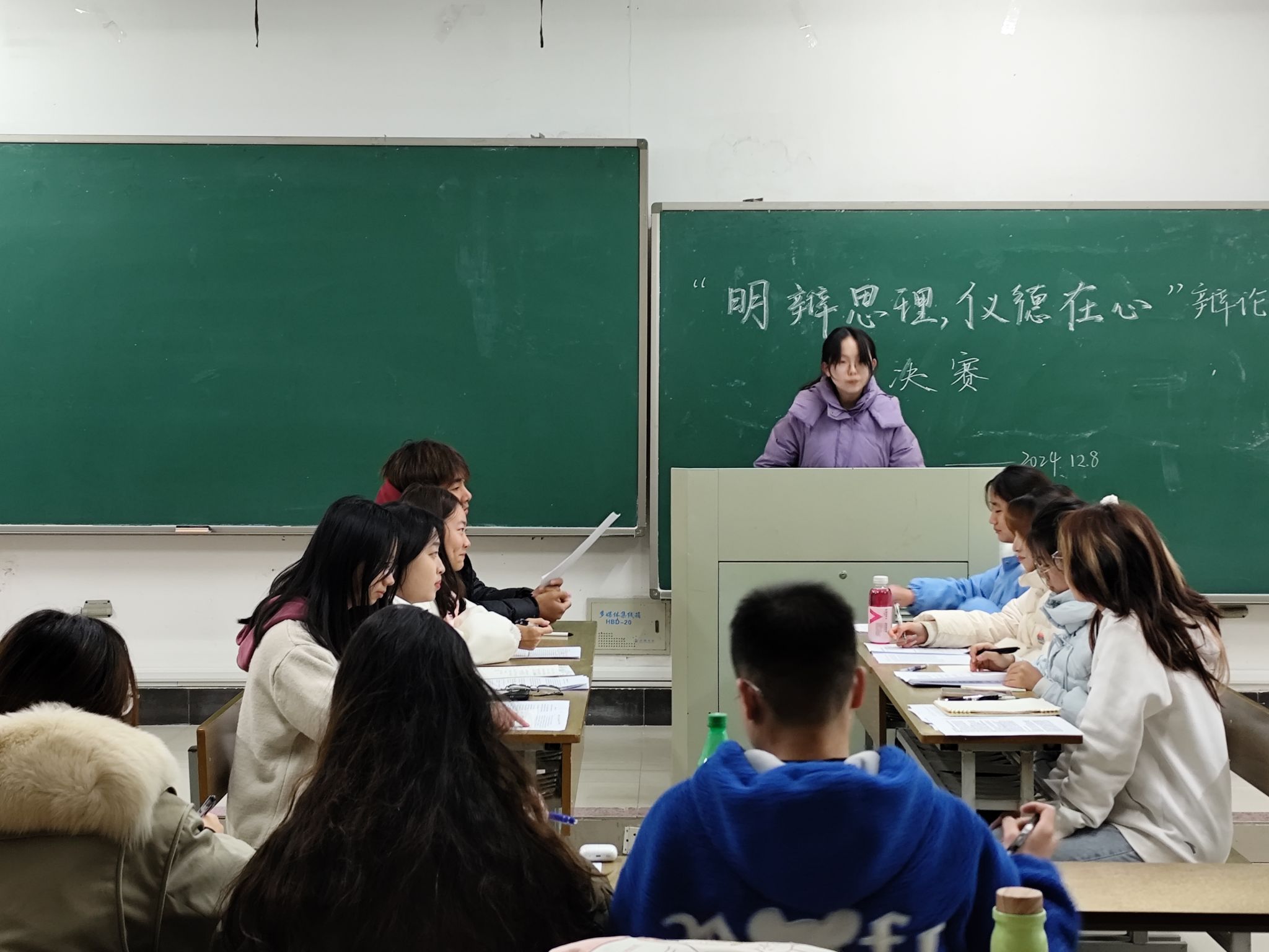 经过激烈的角逐以及评委的反复斟酌,4v4赛制2401班、2402班、2404班和2406班代表队进入决赛,2401班,2406班获得最终胜利。2401崔百惠、2402马婉茹、2404周彦锦获得“最佳辩手”称号。另外1v1赛制共9人获奖。