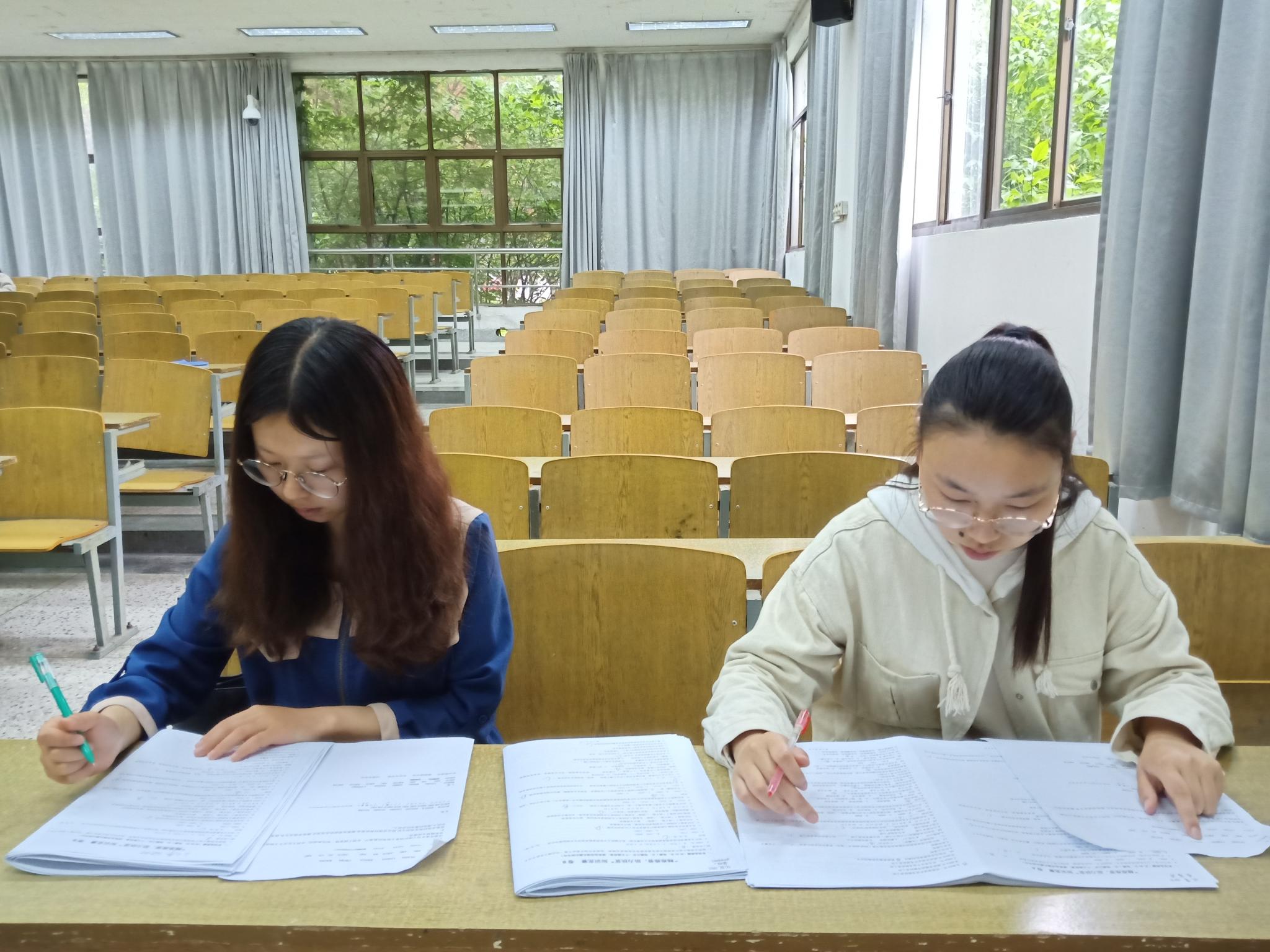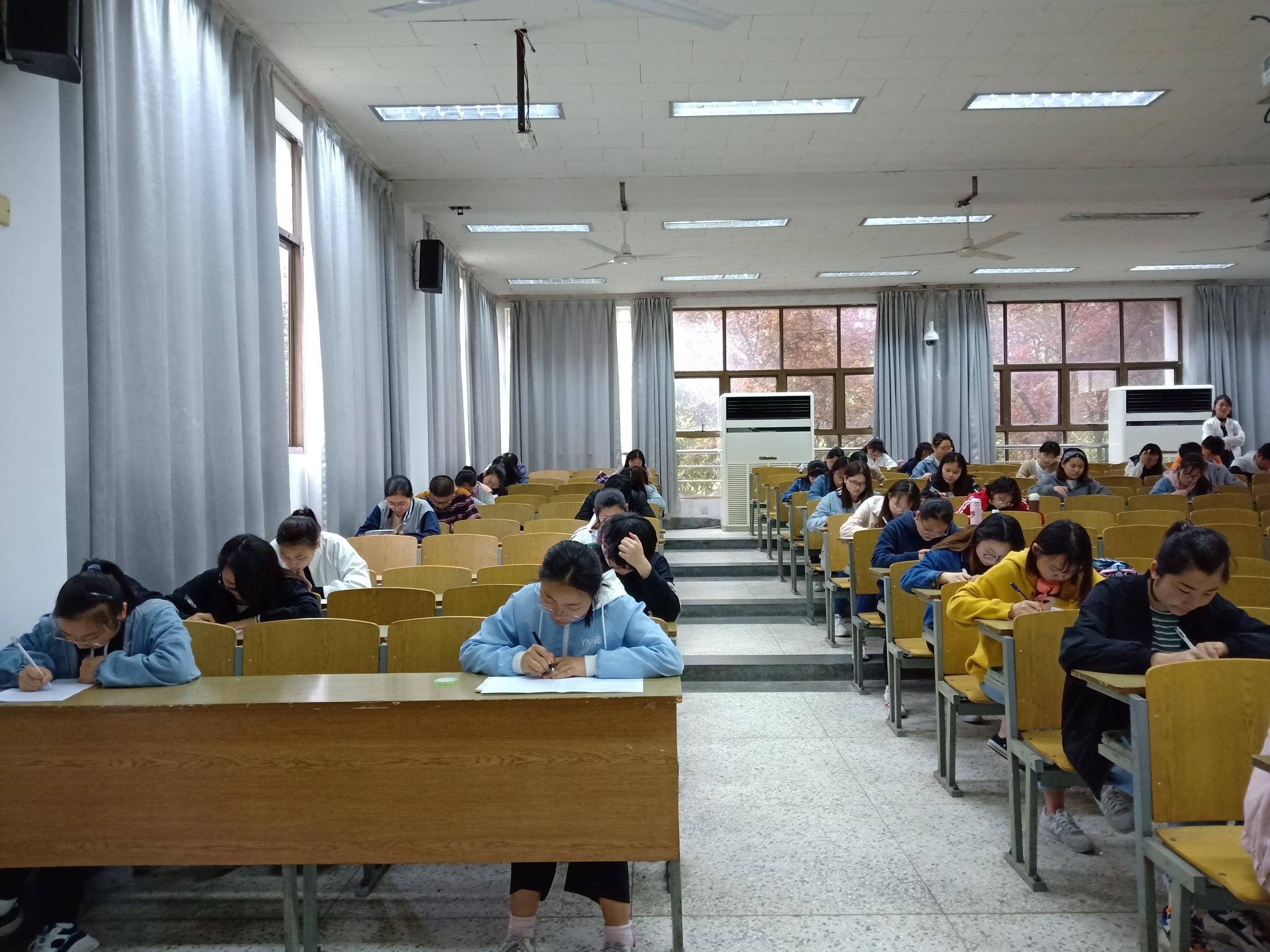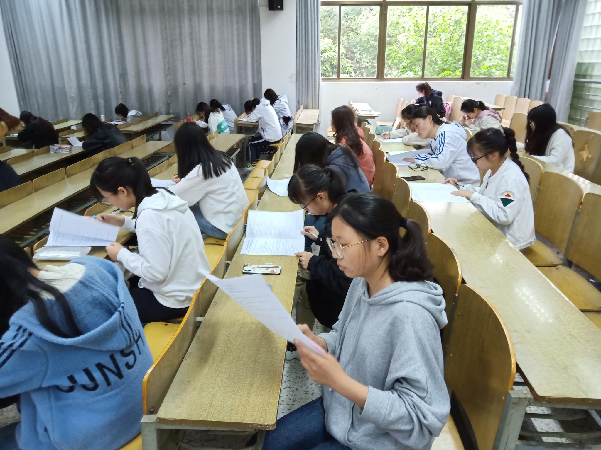 活动正式开始前,即将进行笔试的同学紧张有序的准备着材料,进行最后的准备,抓紧每一分每一秒背诵。与此同时,监考人员也开始进入考场。参赛人员入场后,监考人员宣布笔试的开始。伴随着“考试开始”声音的响起,同学们纷纷拿起笔开始紧张热烈的竞赛。考场特别的静,只有同学们写字的刷刷声和外面风雨打在树叶上的沙沙响,而同学们就在这样静谧的环境中让自己在此时此刻尽情的发挥出最佳水平。