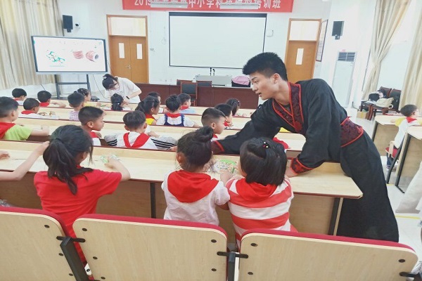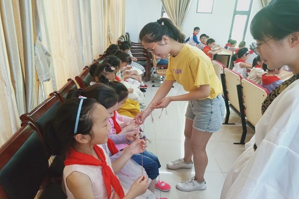 活动中,志愿者首先通过课件展示,让小朋友们了解端午节的风俗与来历等相关知识,如:吃粽子、赛龙舟、挂香袋等庆祝活动,让小朋友们了解屈原的故事,激发他们的民族自豪感。然后,志愿者们为小朋友带来了一场关于屈原的精彩话剧。最后,志愿者们向小朋友发放了制作香囊的材料,小朋友在老师和志愿者的帮助下分组共同完成香囊,并且系上了彩绳。至此,此次活动圆满结束。