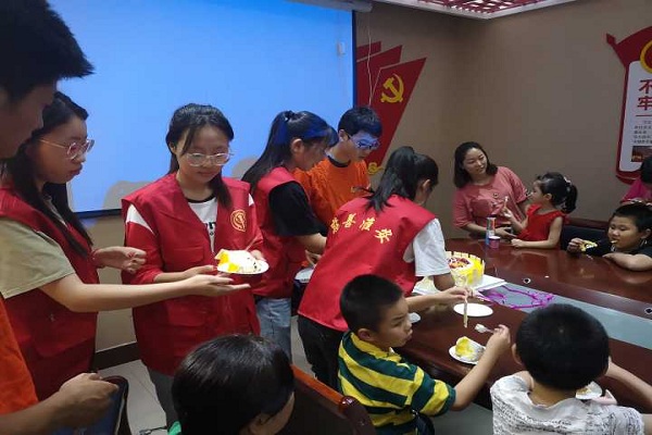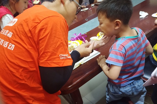 为了活动的顺利进行, 下午两点,参加活动的同学们到达与光同行自闭症儿童康复训练中心,为活动的展开提前做了充分的准备。小朋友们在家长和老师的带领下,来到了我们准备好的小型会议室。我们给每一个小朋友送上一份水彩笔和小型培植花土,然后,切了蛋糕并分发给小朋友们。在吃蛋糕前,大家一起拍手合唱了生日歌。小朋友们很喜欢蛋糕,气氛很愉快,活动在这样的氛围中画上了圆满的句号。