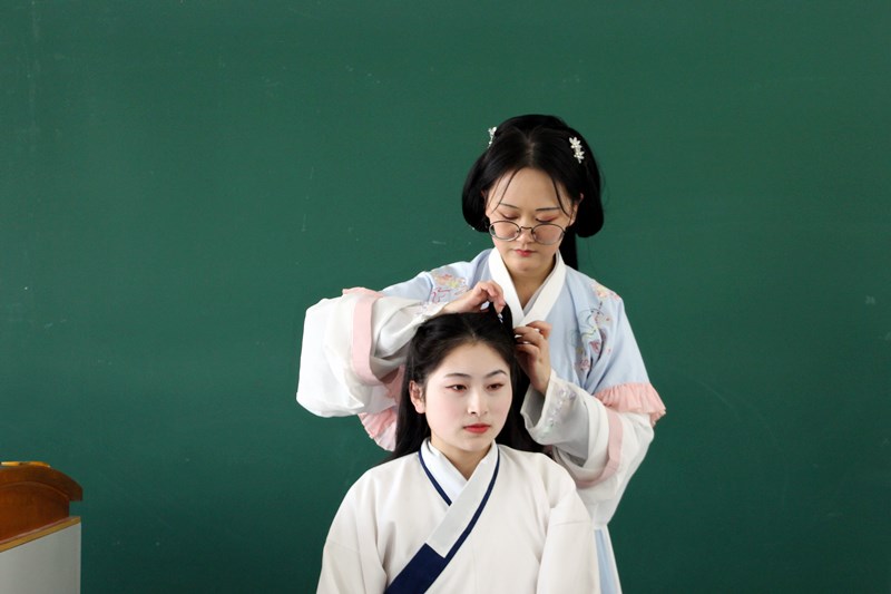 宝髻松松挽就,铅华淡淡妆成。社员们对古典妆发技巧的熟练掌握有助于采菊诗社活动开展的丰富性与多样性。本次活动不仅让同学们感受到传统发髻之美,提高了同学们的审美情趣,更让同学们走进中华优秀传统文化,增强同学们对传统文化的认同感。