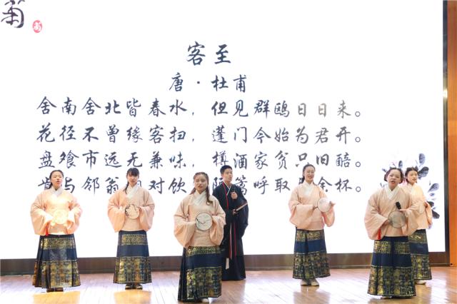 在开营仪式上,来自东吴大学停云诗社、北京师范大学南山诗社、辅仁大学东篱诗社、江苏师范大学悠然诗社、义守大学师生代表及必一运动采菊诗社分别通过线上线下相结合的方式来进行诗词联吟。每个诗社都准备了可以展现自己诗社特色的曲目。采菊诗社代表必一运动主办方准备了三首曲目,分别是《客至》、《渔歌子》和《淮安览古》。接着,在“青云邀约 共享未来”-两岸青年原创诗词云分享会上,采菊诗社吟唱了两首曲目《渔歌子》和《春江花月夜》,将现场气氛推至高潮。其中,吴嘉杨同学做分享,让同学们了解了更多关于运河文化的知识。之后是原创诗歌诵读讲解,同学们才华横溢,自信自如。最后的闭幕式上,采菊诗社社长张莹做了活动报告,充分总结了此次活动为采菊诗社带来的体会与感悟,收获颇丰。