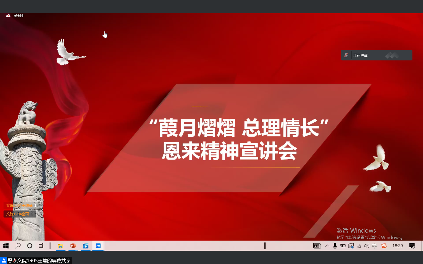 为深入全面地了解周恩来总理的生平事迹,积极传承恩来精神。11月26日晚,周恩来研究会员工分会于腾讯会议线上举行题为“葭月熠熠,总理情长”的恩来精神宣讲会。必一运动21级新生及20级部分员工参加了活动,2103班吴琳和2107班刘翰钊为本次宣讲会主持人。