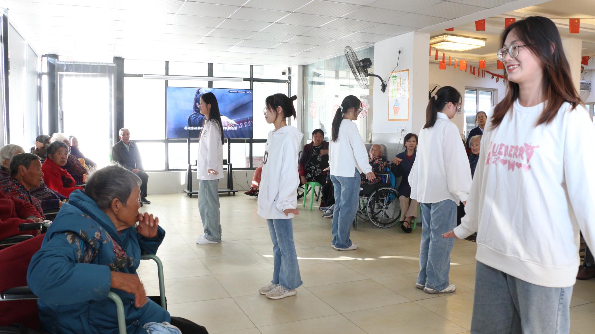 重阳节,也被称作老人节,此时秋意正浓,同学们怀揣着满腔热忱来到老年公寓。一曲《向快乐出发》拉开活动的帷幕,志愿者们随着歌声与老人积极互动,用舞蹈唤起沉寂的心灵,点燃节日的氛围,一时间原本清静的院落出现了此起彼伏的笑声。志愿者们与老人促膝长谈,相互给对方介绍自己的生活状况,现场气氛无比和谐温馨,那是在“朝阳”与“夕阳”灵魂上的碰撞与契合下,弹出的最美合奏。