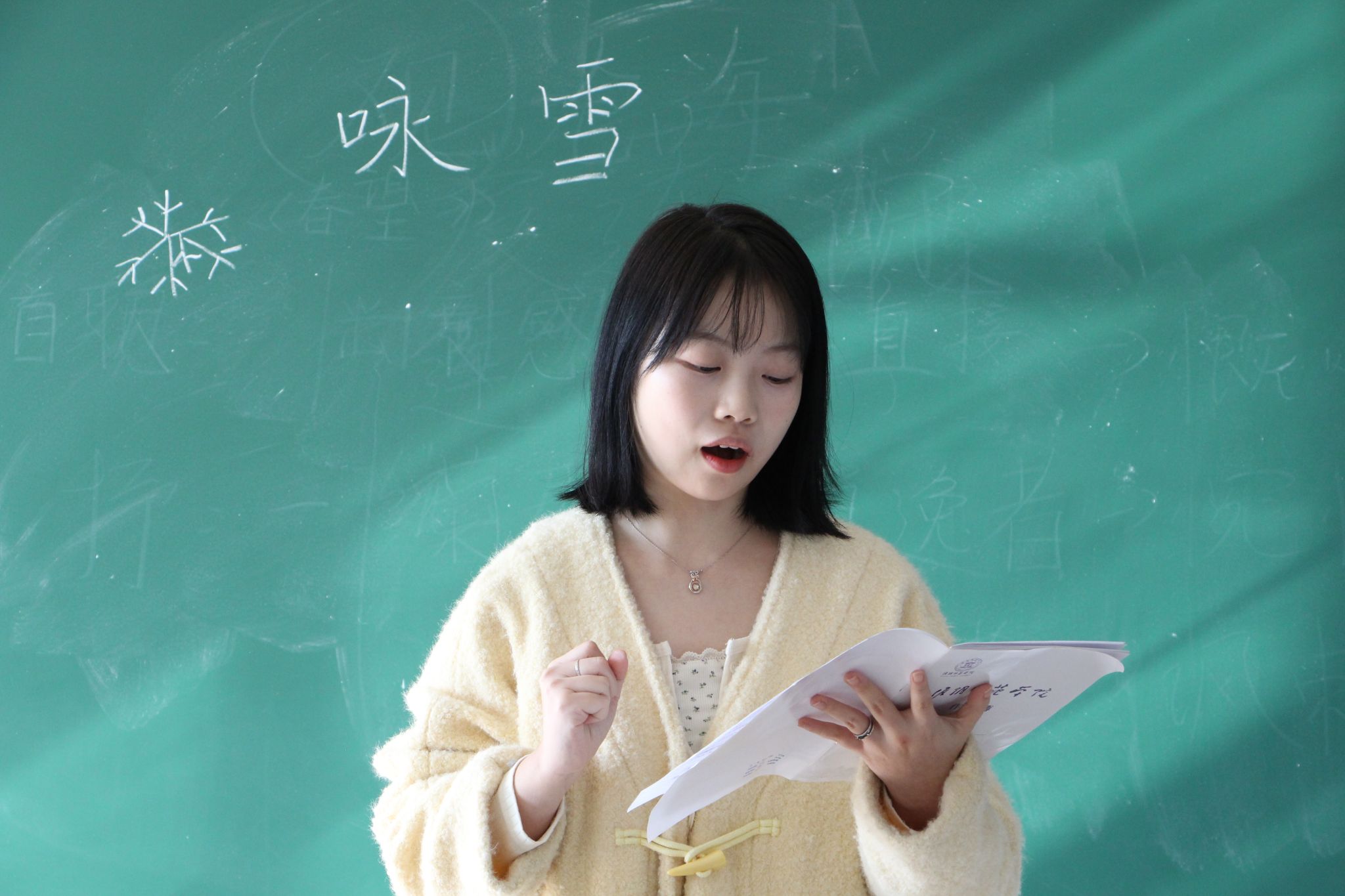 本次考核内容包括毛笔字、钢笔字、粉笔字以及模拟授课,流程与江苏省师范生技能大赛赛制保持一致。三字考核以班级为单位,集中考核;模拟授课环节则要求考生在现场从题库中抽取说课和试讲主题,独立准备一小时后到指定教室,面对评委教师进行3分钟说课与7分钟演讲,评委根据员工的现场表现按照百分制分别进行打分。本次考核共分为18个小组,各小组同步开展考核。