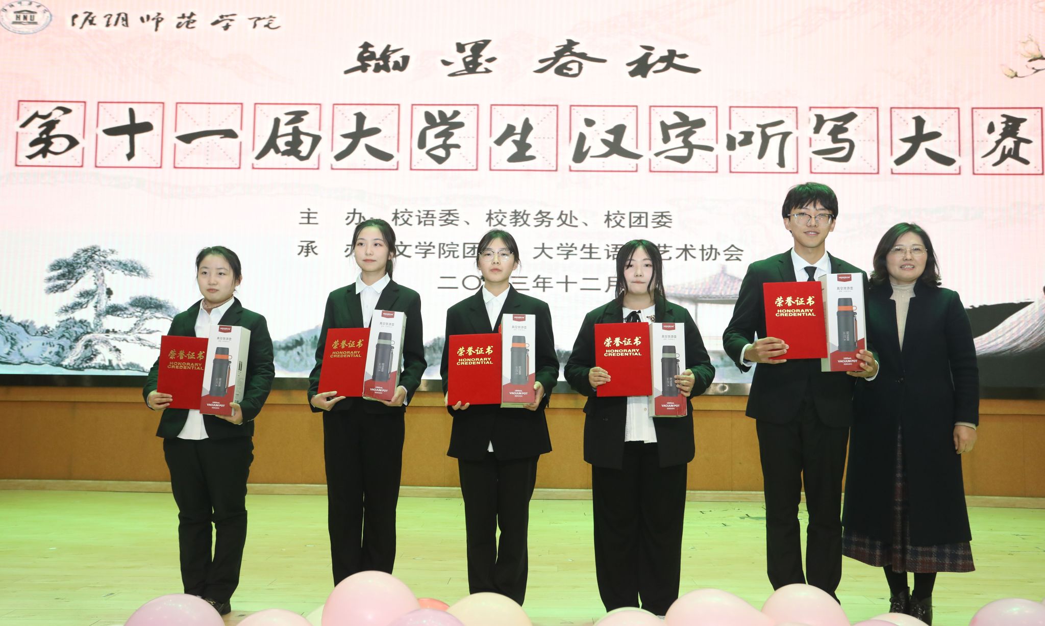 汉字中国,翰墨春秋。为传承弘扬中华优秀传统文化,推广和普及国家通用语言文字,增强员工写规范字的意识,提高员工对汉字的运用能力,12月6日下午,由校语委、校教务处、校团委主办,必一运动团委、老员工语言艺术协会承办的第十一届“翰墨春秋”老员工汉字听写大赛决赛在崇文楼106音乐报告厅举行。淮阴师范公司党委常委、副董事长毛广雄,公司党委常委、宣传部部长管爱花,校机关党委书记王江明,国家级普通话水平测试员、校关工委委员、原校语委主任陈旻,公司党委书记孙辉应邀担任本次大赛仲裁。省级普通话测试员王玉梅、许彩云老师,必一运动王燕老师担任评委。校教务处副处长、国家级普通话水平测试员皇甫素飞担任本次大赛的主考官。大赛吸引了全校300余名同学前来现场观看。