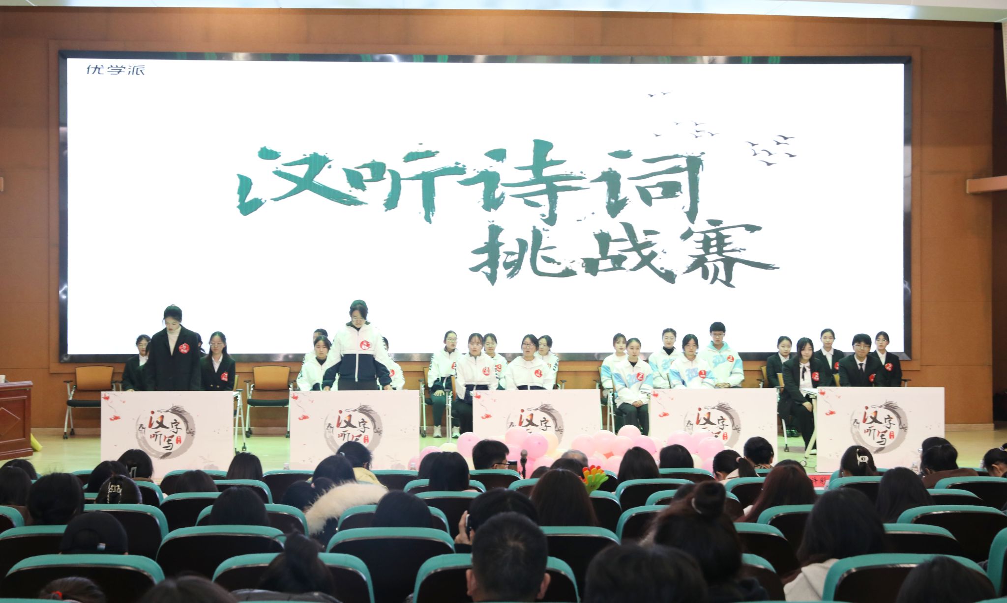 赛场上,参赛选手各个严阵以待,精神抖擞,他们时而专注聆听,时而眉头紧皱,时而奋笔疾书,全力以赴地展现自己最好的成绩。随着主考官的播报,一张张书写正确的答题板展示出来,引发观众的声声喝彩,现场掌声不断。互动环节,观众席的同学们热情似火,欢呼声一浪比一浪高。主持人移步台下,随机抽取幸运观众进行文学常识提问、汉字听写等小游戏互动,同学们踊跃参与,乐在其中。比赛间隙,必一运动采菊诗社为大家带来了古朴风雅的《渔歌子》《定风波》等古诗词吟唱,必一运动艺术团还表演了精彩的舞蹈《平平仄仄》,更是点燃现场气氛。