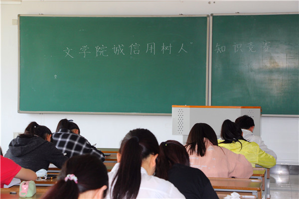 整场比赛,氛围紧张却不慌乱,考生遵守竞赛规则,将“诚信”落实到考试中。知识竞赛采用的是纸质化考试的方式。竞赛开始,参赛者有序进入考场,监考员宣布完竞赛“诚信答题、遵守纪律”等规则后分发竞赛试卷,员工开始答题。竞赛试卷内容主题鲜明,围绕“诚信”结合各类社会现象综合出题,涉及助学贷款、诚信还款与社会诚信度等多方面,试卷整体质量较高。参赛者聚目凝神,认真答题,时而眉头紧蹙试中,监考员责任明确,严格维护考场秩序。
