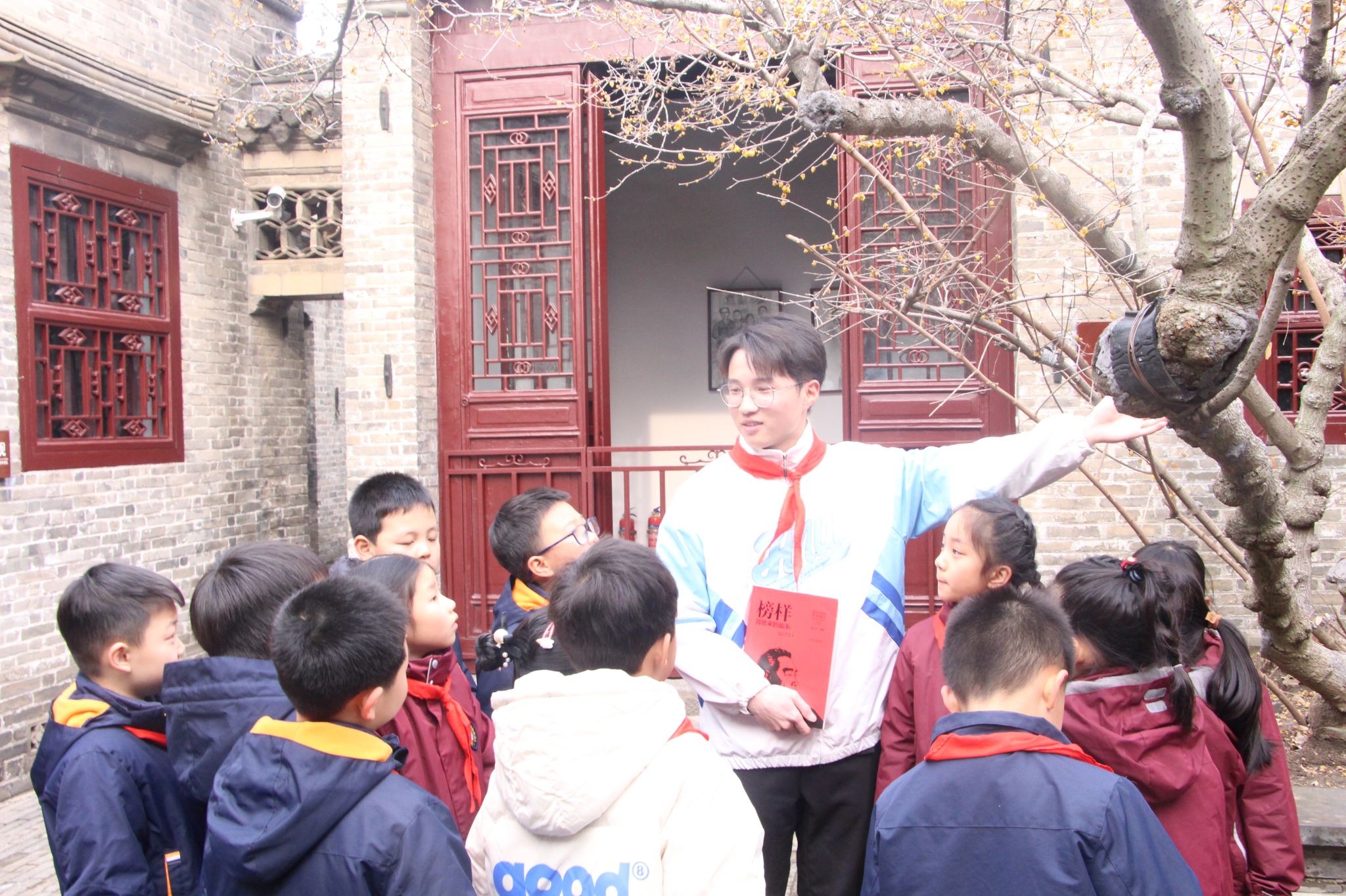 在童年读书处古色古香的院子里,有一株周恩来小时候亲手种植的梅花树。在这株“一品梅”下,祁昊向少先队员们动情的讲解着它的来历和寓意,官至一品、德至一品、人至一品。听着“一品梅”的故事,同学们对这株梅花有了更深入的了解。