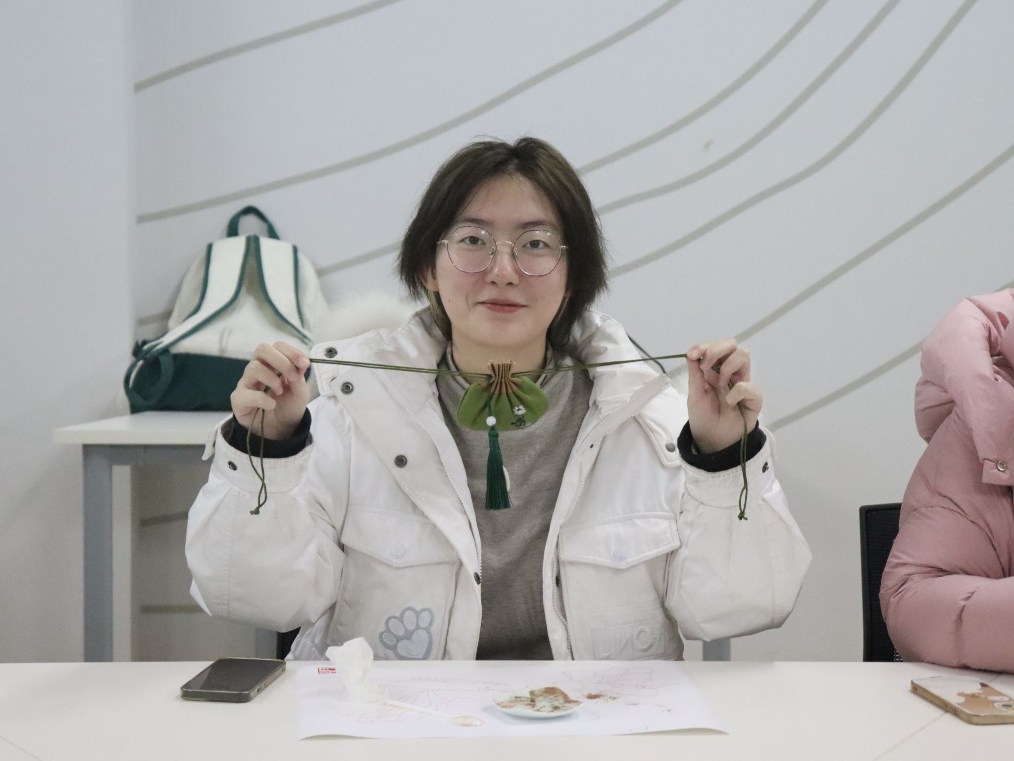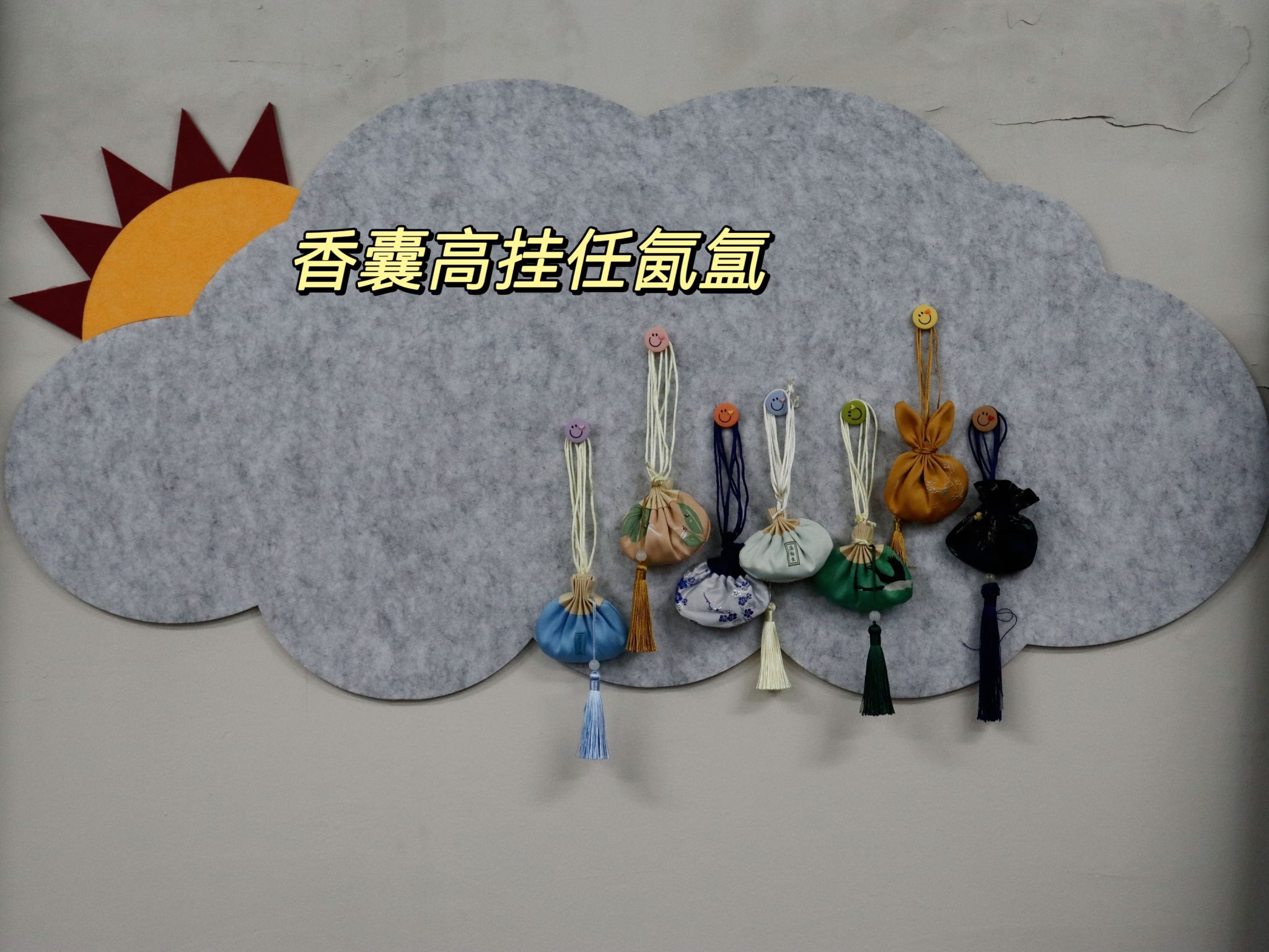 一进入汇心团体室,大家就看到了桌上式样繁多的香包,色彩鲜艳、琳琅满目。有的图案是绣球花,寓意着花开富贵;有的图案是竹,寓意着节节高升;有的图案是鹿,寓意着福禄与好运。大家挑选了心仪的香包,在心理委员的指引下落座。