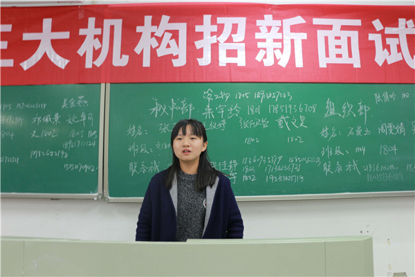 面试遵循公平、公正、公开的原则,各面试负责人在面试前做好了充分的准备。与此同时,面试同学们也热情洋溢,跃跃欲试想将自己最好的一面展示出来。在整个面试的过程中,同学们对自我陈述的时间拿捏到位,每一位上台的同学一个接一个,无缝对接,面试进行的十分顺利。面试官们丝毫也不懈怠,针对如何平衡工作与学习以及如何提高个人工作能力等工作中不可避免会遇到的问题,向面试者提出了严肃却又不失诚恳的质疑,不少同学能应对自如且针对所在部门未来发展提出了自己独到的见解。