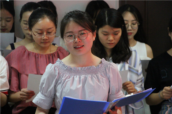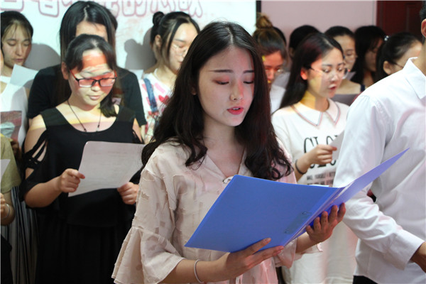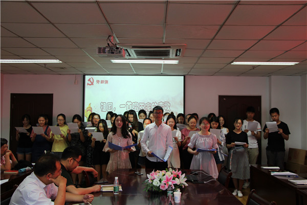专题报告结束后,员工党员集体朗诵诗歌《祖国,一首唱不完的恋歌》。荡气回肠的韵律、激情澎湃的诗句,充满着同学们对祖国无尽的赞美与热爱。朗诵表演引起了现场师生的强烈共鸣,报以热烈的掌声。