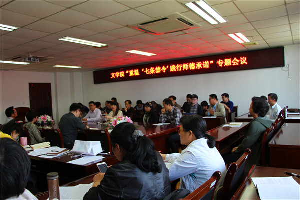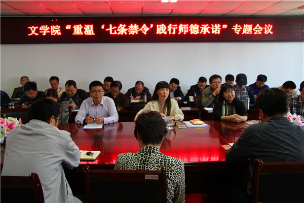 谭善明教授发表了自己关于高校教师师德的感受。他认为教师是“传道受业解惑”的主体,应当热爱教育,提升自我修养,以精神体验践行师德,在实践中诠释师德师风的真正内涵。中文系党支部书记杜运威作为年轻教师代表发言,他强调“学高”“身正”对于师德建设的重要性,同时,他还指出积极拥护党的领导、高效传达知识、更新教学理念、探寻教学方法、提升道德素养、做员工的表率是教师的职责。