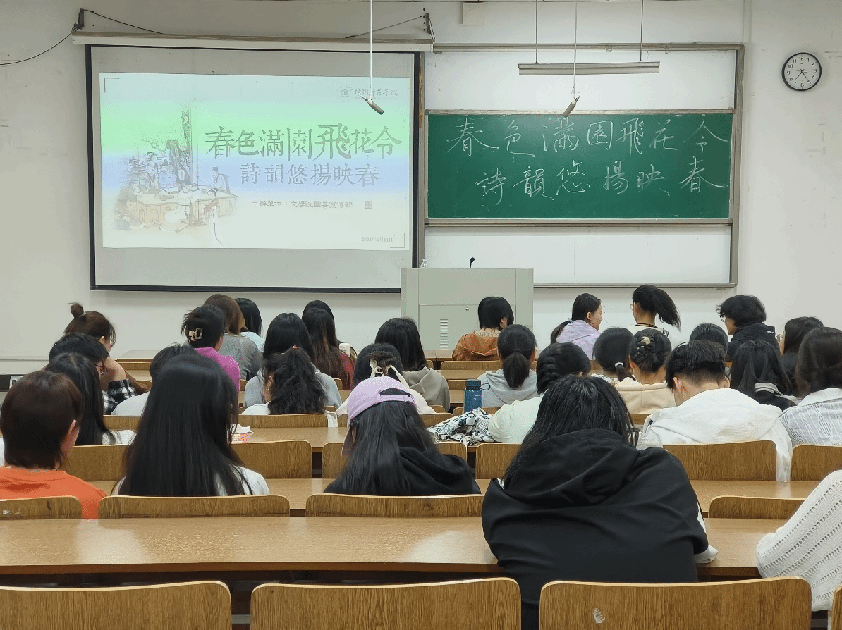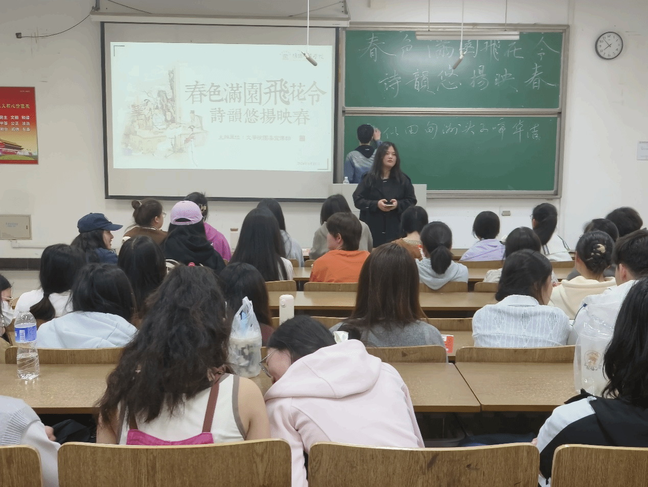 紧接着,迎来了激动人心的飞花令环节。飞花令,这一源自古代的诗词游戏,历经千年沉淀,同学们以“花”“柳”“春”等字为令,纷纷吟诗诵词,一时间,春意盎然,诗意盎然。在这个环节中,同学们不仅展现了高超的诗词造诣,更传递了对中华优秀传统文化的理解与喜爱。