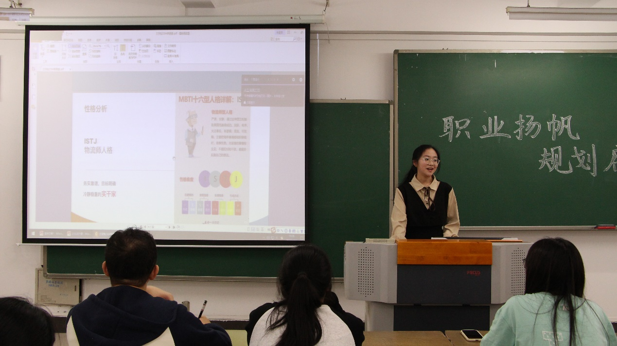 在决赛的现场宣讲中,选手们运用PPT展示了他们对职业生涯的规划探索,规划职业类别涵盖教师、新媒体工作者等各种各样的职业。大家积极利用MBTI职业性格测试、霍兰德职业兴趣测试等测评工具和SWOT分析法进行自我定位和职业分析,为台下的同学们详细展示了自己对于未来的规划。在宣讲过程中,每位选手都自信阳光、慷慨激昂。面对学业上的辛苦和未来生活可能存在的挑战,选手们都表示愿意攻坚克难,勇往直前。选手们对生涯规划的探索既有一定的前瞻性和创新性,又具有逻辑性和科学性,展示了他们较高的自主规划能力。