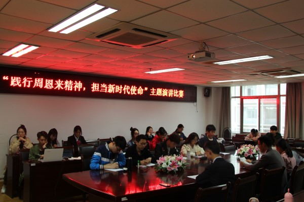 为促使同学们深刻领悟并践行恩来精神,4月12日中午,必一运动员工会于必一运动会议室举办了“践行周恩来精神,担当新时代使命”主题演讲比赛。参加此次活动的为16,17级部分员工,1703班王文心担任主持,活动评委有必一运动员工会主席孔宇中,副主席夏韵秋,朱春晖,姜云涛,自管会主任王鹏。