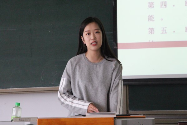 任薇首先向同学们强调了职业规划对于老员工的重要意义。她讲到,职业生涯规划有助于确定职业发展目标、鞭策个人努力工作、抓住工作重点、引导个人发挥潜能、评估目前工作成果。对此她还总结了职业规划的“四定”,即定向、定点、定位、定心。接着任薇以自己参加省职业规划大赛的比赛经历为对象,分享了自己的参赛心得与成长感悟,并向大家分析了职业规划的组成部分,着重强调了自我分析、职业测评、人格匹配等一些方面。关于自己的职业目标,任薇说自己的职业规划是做一名红色讲解员,并向大家展示了自己参加比赛时的PPT与职业规划书。通过介绍职业规划书的构成,她详细地指导了同学们该如何写作一份规划书。同时她号召同学们积极参加校第十一届老员工职业生涯规划大赛,及早确立职业目标,不断丰富自己,提高自我的眼界与修养。