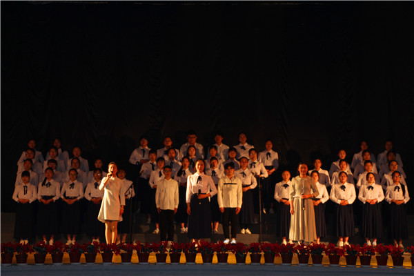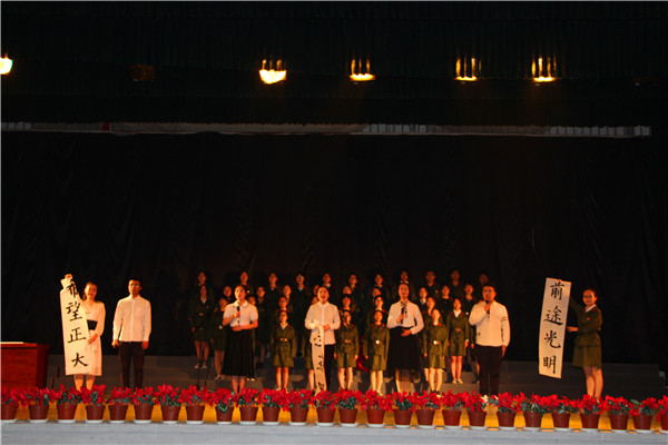 悠悠梦里,海棠花香。伴随着舒缓的音乐,1606班的《一季海棠一季梦》将观众代入了那个峥嵘岁月。回首往昔,盼望总理归来;展望未来,他们许下美丽的愿望:“一愿华夏日见昌盛,二愿太平常在人间,三愿炎黄人才辈出!”总理之风,山高水长,行者的脚步也都在操劳。1703班的诗朗诵《海棠依旧》极富创意,他们以情景剧的形式动情地演绎着。1604班挥动着国旗,激情澎湃地呼唤着周总理,“120年的时光,69年地奋进,还有42年每分每秒地思念”,周总理的足迹踏遍了中国,他的精神永存于人间。那种力量叫人格,那种鞠躬叫尽瘁!
