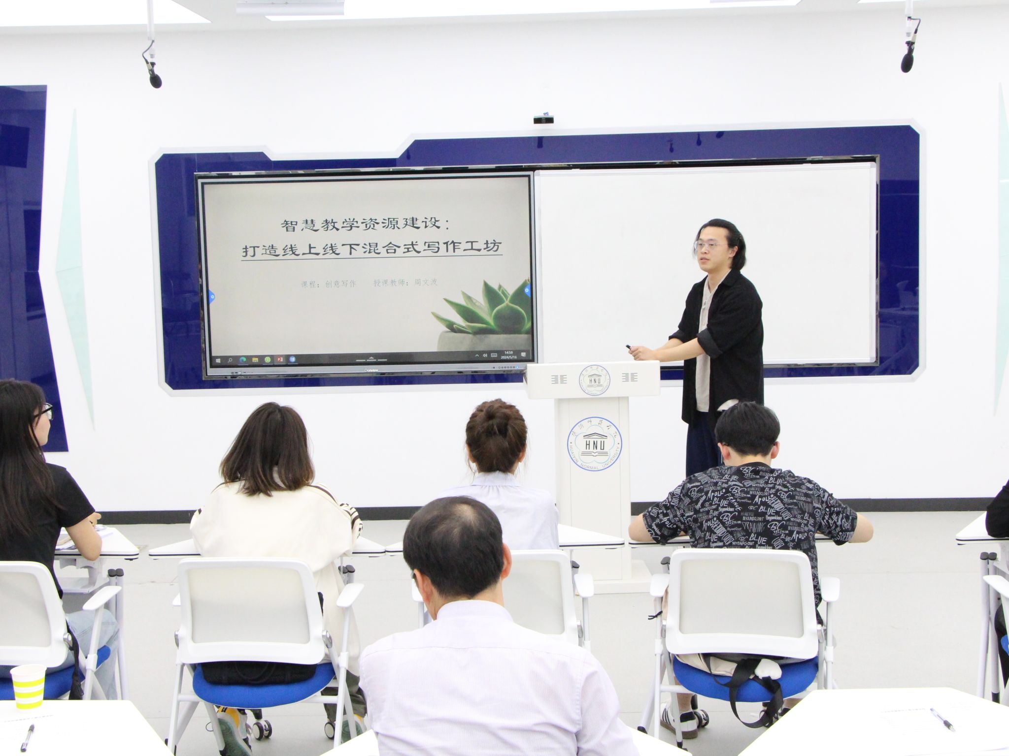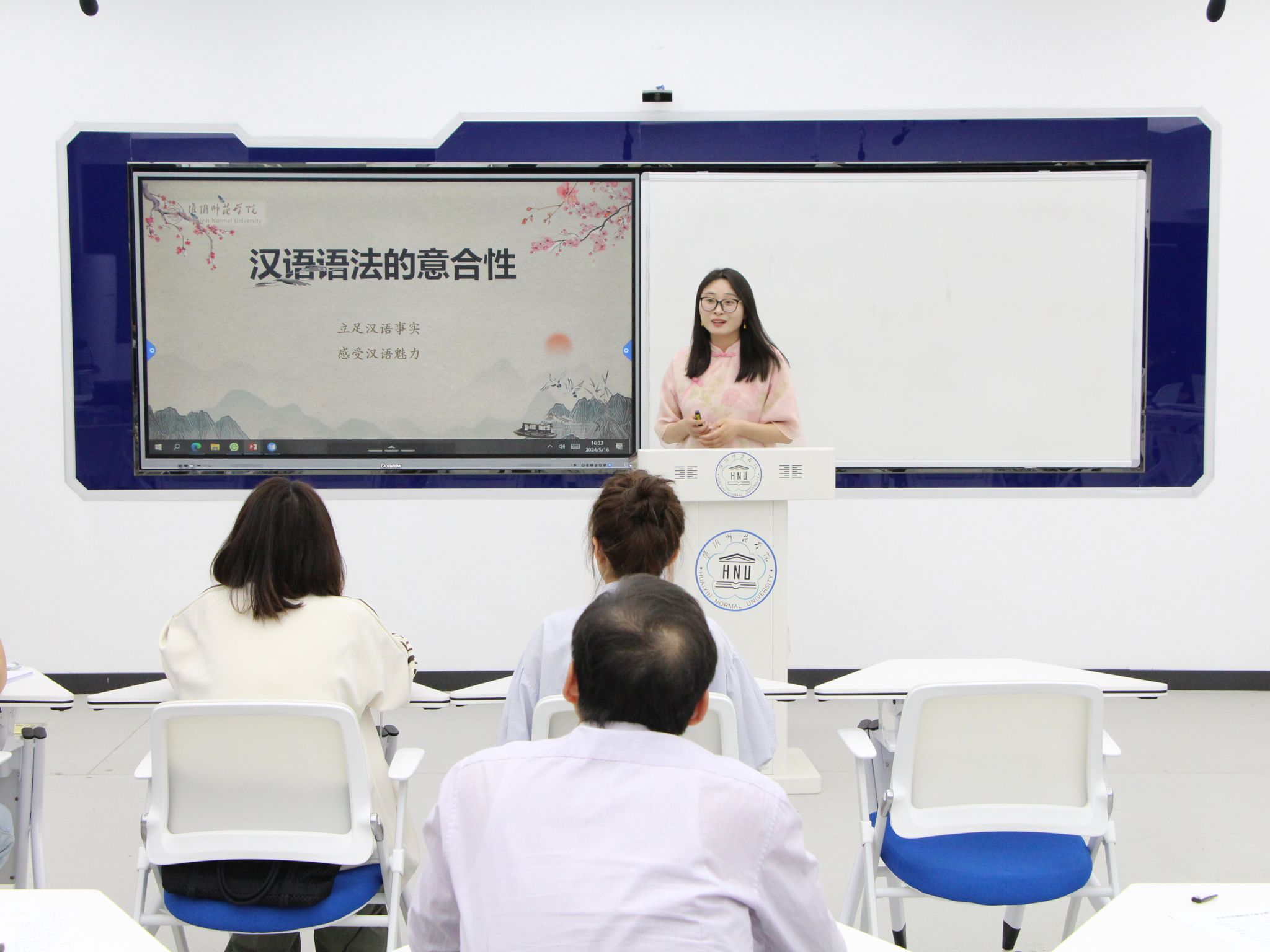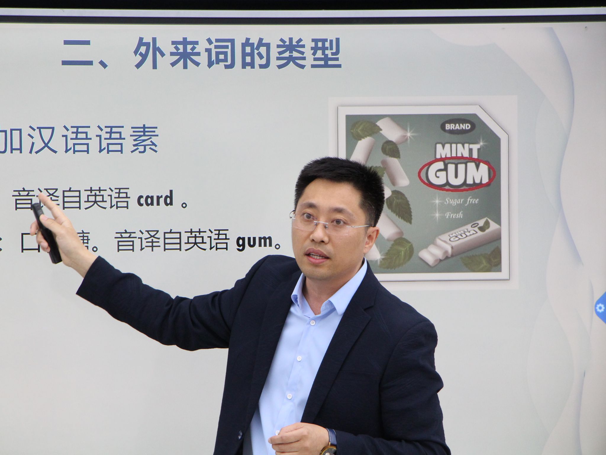 华树君老师从《现代汉语(1)》资源建设、资源使用和效果展示三个层面向我们展示了智慧教学资源建设情况。他从教材中挑选了汉语词汇中的外来词的部分,从不同形式的外来词汇的界定、类型和规范,为员工们提供了一条学习外来词汇的清晰道路。