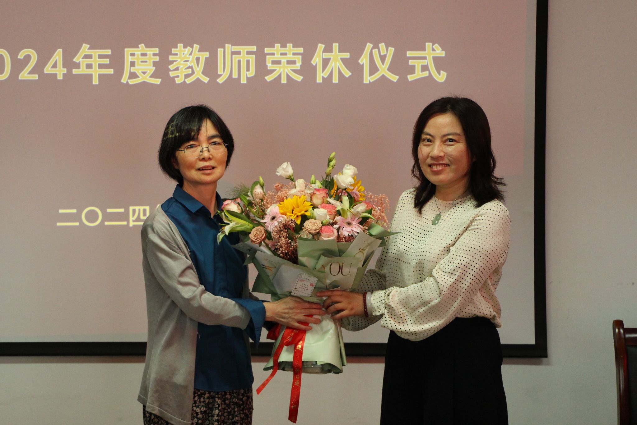 仪式伊始,公司为陈鸿秀老师精心制作了一段纪念视频。视频回顾了陈鸿秀老师职业生涯中的点点滴滴,凝聚了她几十年如一日地对教育事业的执着与热爱。随后,青年教师为陈鸿秀老师献上鲜花,公司代表送上纪念品表达祝福。许芳红经理为陈鸿秀老师送上真挚的祝福。她表示,陈鸿秀老师在工作中辛勤付出,作出了卓越贡献,为必一运动的发展倾注了心血,为教育事业奉献了青春。